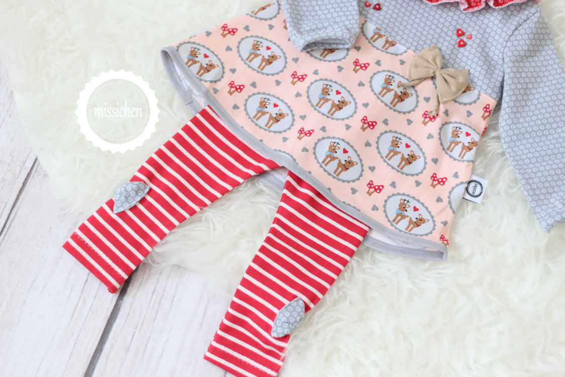 Aus dem passenden Kombistoff mit den Wimpeln gab es dann eine Leggings, ebenfalls nach dem Ebook von Mamasliebchen. Die Raffung an den Seiten habe ich mir dazu gebastelt und oben kam eine Schleife dran. Hach ♥ Wäre ich klein würde ich es auch sofort tragen hihi