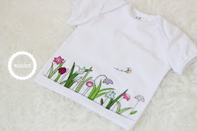 Es gab also eine ganz lockere, leichte und bequeme Hose für die baby-Schwester, dazu ein Shirt mit einer genähmalten und applizierten Blumenwiese und ein Halstuch. Die Baby-Schwester sabbert nämlich ziemlich viel und unser Halstuch verbrauch pro Tag steigt immer mehr thahaha. Sie ist ja nun die vierte Tochter von meinem Papa und als ich ihn dann fragte, warum er beim letzten denn so gepfuscht hat und das die ganze Zeit ausläuft, da meinte er nur 'ja, das ist eben ein Auslaufmodell' hahahhaha. Aber wir lieben sie auch sabbernd! Und man kann ja Halstücher ohne ende nähen hihi. Die sind ja fix gemacht ♥