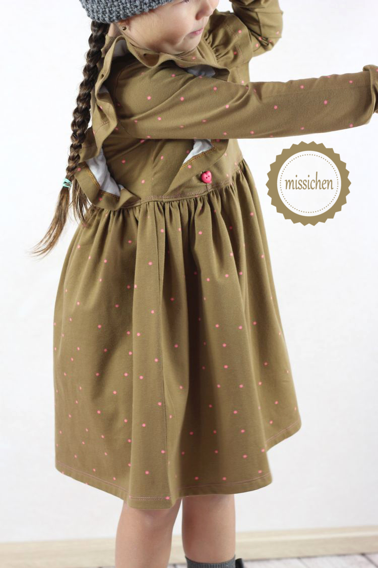 Der Schnitt ist das 'Millie Dress' von Mix it Make it Patterns.. oder so ähnlich irgendwie hehe. Im Sommer habe ich das schon öfter mal genäht und auch für den Winter brauchten wir ganz dringend ein neues. Ich glaube tatsächlich, dass kein Kleid so oft getragen wurde, wie dieses. Mini hat es einfach ganz genau so sehr geliebt, wie ich.