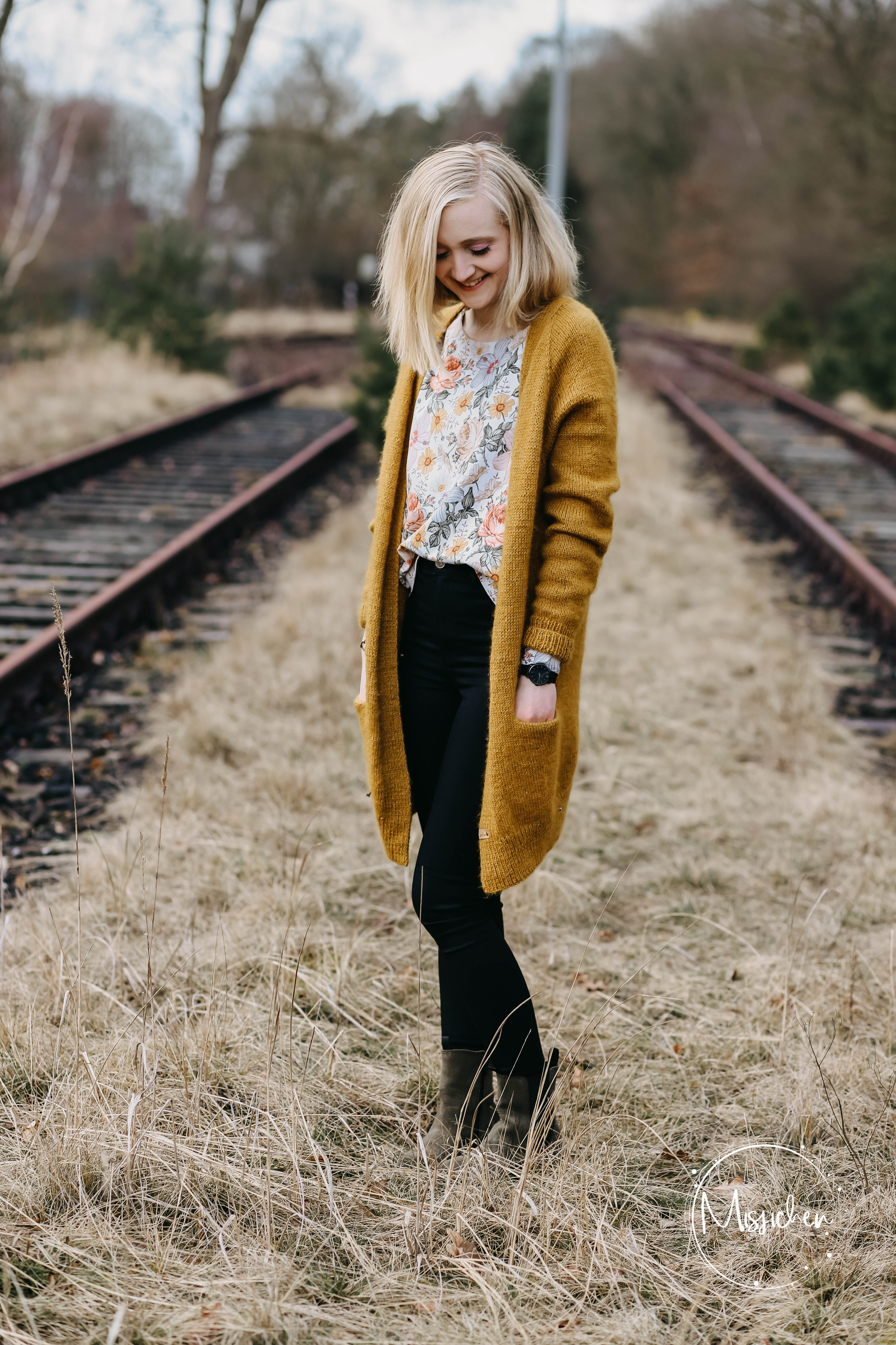 Den Anfang macht mein geliebter langer Cardigan nach der Anleitung von Petite Knit in senfgelb. Der ist SO schön warm und SO schön kuschelig war aber auch SO unfassbar viel Arbeit und manchmal, da ärgere ich mich ein klitzkleines bisschen, dass ich ihn nicht in grau gestrickt habe, denn da würde er zu deutlich mehr Sachen passen und kombiniert werden können. Aber irgendwann, da mach ich einfach nochmal einen grauen!